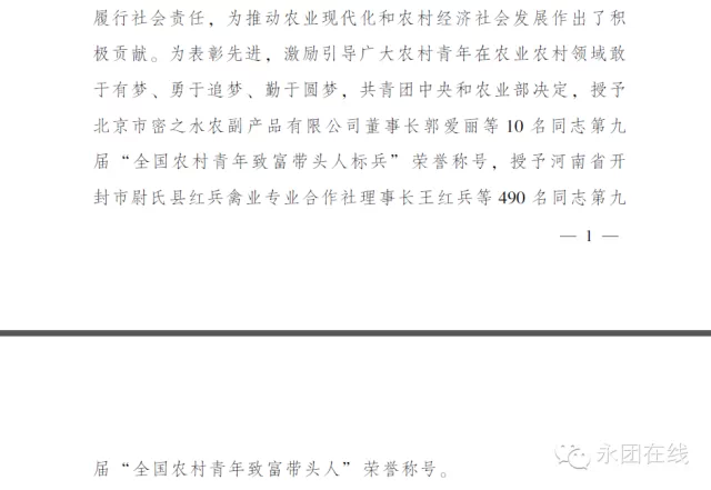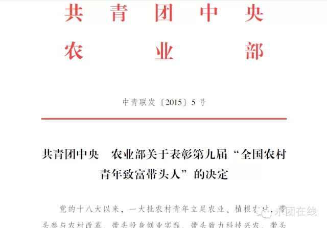 為樹立和宣傳優(yōu)秀青年涉農(nóng)創(chuàng)業(yè)典型,示范和引導(dǎo)廣大青年在農(nóng)業(yè)領(lǐng)域創(chuàng)業(yè)致富、促進現(xiàn)代農(nóng)業(yè)發(fā)展和新農(nóng)村建設(shè),共青團中央、農(nóng)業(yè)部日前評選出郭愛麗等10名第九屆“全國農(nóng)村青年致富帶頭人”標(biāo)兵、王紅兵等490名“全國農(nóng)村青年致富帶頭人”。