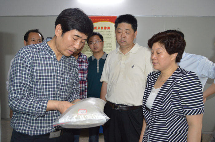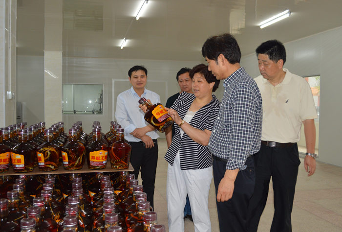董事長(zhǎng)譚群英向領(lǐng)導(dǎo)一行介紹公司蛇毒產(chǎn)品