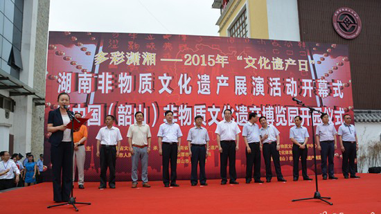 6月13日上午,2015年“文化遺產(chǎn)日”湖南非物質(zhì)文化遺產(chǎn)展演活動在韶山拉開帷幕。湖南省委常委、宣傳部長許又聲,副省長李友志等領(lǐng)導出席了啟動儀式。永州市異蛇科技實業(yè)有限公司總經(jīng)理郭德志作為非物質(zhì)文化遺產(chǎn)傳承人出席了本次會議。