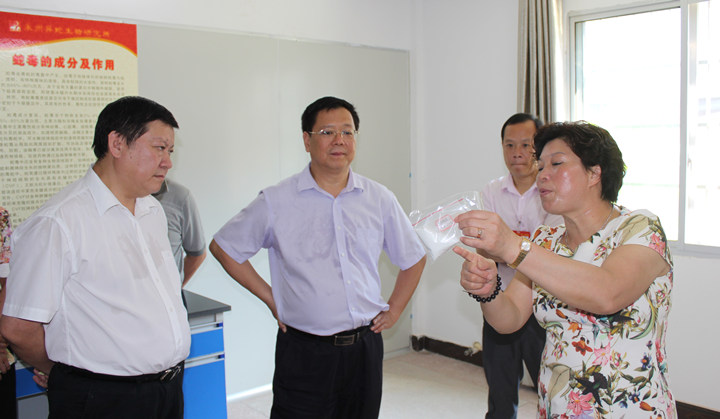 譚群英女士向領導一行介紹蛇毒的科學價值