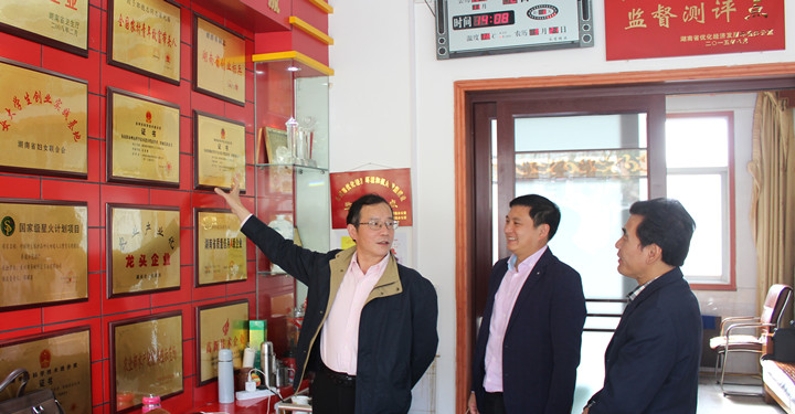 11月2日下午,湖南省科技廳科技成果處譚立剛處長一行在永州市科技局相關(guān)人員的陪同下來異蛇科技視察指導(dǎo)工作!總經(jīng)理郭德志向譚立剛同志介紹了異蛇科技公司目前所獲得的科技成果及準(zhǔn)備攻克的科技項(xiàng)目,同時(shí)向領(lǐng)導(dǎo)一行介紹了公司的發(fā)展現(xiàn)狀及發(fā)展規(guī)劃,譚立剛在聽取完郭總的匯報(bào)后,對(duì)公司為科研所做出的努力表示肯定,希望公司堅(jiān)持科技創(chuàng)新,并期待公司將異蛇產(chǎn)業(yè)做大做強(qiáng),做成湖南養(yǎng)生酒的行業(yè)標(biāo)桿!