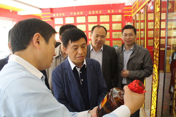 總經(jīng)理郭德志向龍建湘一行介紹公司的異蛇王酒釀泡技藝
