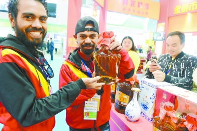 11月29日,國(guó)外消費(fèi)者在農(nóng)博會(huì)上選購(gòu)商品。湖南日?qǐng)?bào)記者 徐行 攝