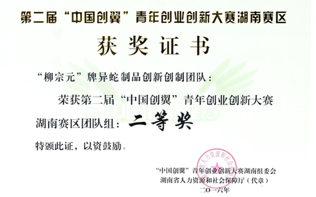 此次比賽采用先市州賽后省級(jí)賽的分級(jí)選拔方式,根據(jù)省賽成績(jī)排名和全國(guó)大賽組委會(huì)的統(tǒng)一分配,湖南省共有43個(gè)項(xiàng)目成功晉級(jí)5個(gè)行業(yè)賽的全國(guó)半決賽,晉級(jí)項(xiàng)目數(shù)量居全國(guó)第四位。湖南省人社廳透露,此次大賽湖南省最終共獲得二等獎(jiǎng)4個(gè)、三等獎(jiǎng)2個(gè)、優(yōu)勝獎(jiǎng)7個(gè)、金翼獎(jiǎng)14個(gè)的優(yōu)異成績(jī),獲獎(jiǎng)項(xiàng)目總數(shù)位列全國(guó)三甲,實(shí)現(xiàn)了歷史性突破。其中“柳宗元”牌異蛇制品創(chuàng)新創(chuàng)制團(tuán)隊(duì)獲得二等獎(jiǎng)。