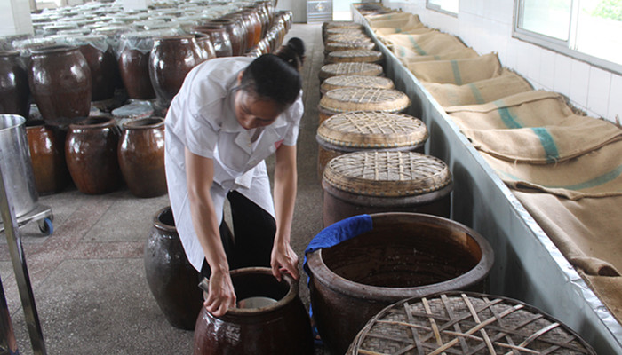 米酒在大缸中發(fā)酵,甜糯的酒香四溢