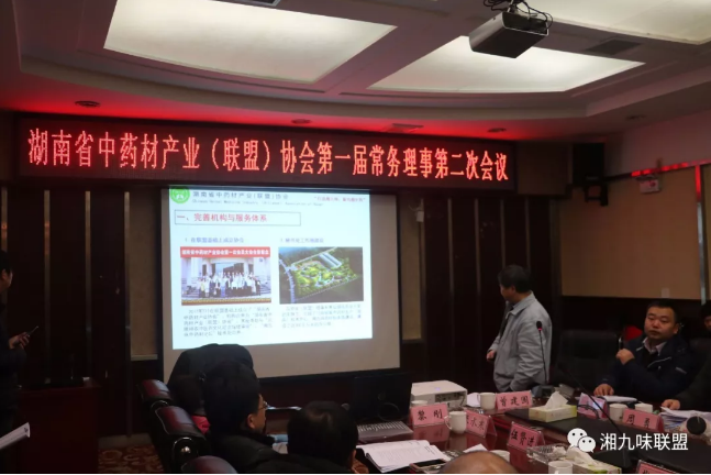 2018年1月7日,湖南省中藥材產(chǎn)業(yè)(聯(lián)盟)協(xié)會第一屆常務(wù)理事會第2次會議在長沙市湖南農(nóng)業(yè)大學(xué)召開,出席會議的有理事長曾建國,秘書長唐其,副理事長朱校奇、伍賢進(jìn)、廖端芳、張水寒、周勇、李伏君、鄧紹國等,以及永州異蛇譚群英董事長等32家常務(wù)理事單位代表。會議還特邀了新化縣縣委常委、副縣長劉勁彪,洪江市人大常委會副主任左再良,以及多個縣中藥材產(chǎn)業(yè)辦和市/縣級中藥材產(chǎn)業(yè)協(xié)會負(fù)責(zé)人參加,共80多人參會,會期一天。
