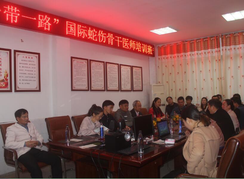 2018年10月16日,以余培南教授、柬埔寨成·布湛、常·孟津為首的“一帶一路”國(guó)際蛇傷專家團(tuán)一行在雙牌中醫(yī)院領(lǐng)導(dǎo)的陪同下來(lái)到公司實(shí)地考察,總經(jīng)理郭德志攜全體員工全程接待,雙方在熱情洋溢的氛圍中交流探討了在蛇傷救治、蛇毒應(yīng)用開(kāi)發(fā)及科學(xué)技術(shù)普及等方面的經(jīng)驗(yàn),期待雙方進(jìn)一步的合作及發(fā)展。余培南教授是世界特色醫(yī)藥協(xié)會(huì)執(zhí)行會(huì)員,世界特色醫(yī)藥協(xié)會(huì)蛇傷醫(yī)學(xué)專業(yè)委員會(huì)顧問(wèn),亞洲蛇傷學(xué)會(huì)會(huì)長(zhǎng),廣東省肇慶市蛇傷救治基地技術(shù)顧問(wèn),廣西自治區(qū)梧州市民族醫(yī)藥研究院院長(zhǎng),享受國(guó)務(wù)院特殊津貼,是我國(guó)蛇傷急救領(lǐng)域的泰山北斗。