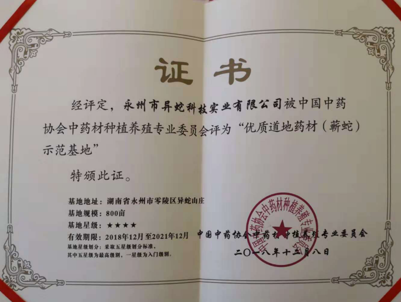 按照中國中藥協(xié)會(huì)中藥材種植養(yǎng)殖專業(yè)委員會(huì)(以下簡(jiǎn)稱“專委會(huì)”)2018年度工作安排,為進(jìn)一步加大中藥農(nóng)業(yè)相關(guān)領(lǐng)域培訓(xùn)力度,提升會(huì)員企業(yè)在借力國家產(chǎn)業(yè)政策發(fā)展自身業(yè)務(wù)的運(yùn)用能力和水平,進(jìn)而服務(wù)于中藥產(chǎn)業(yè)轉(zhuǎn)型升級(jí)、農(nóng)業(yè)供給側(cè)改革、精準(zhǔn)扶貧和鄉(xiāng)村振興,同時(shí),為促進(jìn)優(yōu)質(zhì)種植企業(yè)與采購企業(yè)達(dá)成戰(zhàn)略合作,實(shí)現(xiàn)共贏。專委會(huì)定于2018年12月7日一9日在四川省成都市舉辦了2018年中藥農(nóng)業(yè)法規(guī)政策、種植技術(shù)、產(chǎn)業(yè)投資培訓(xùn)班(第二期)暨優(yōu)質(zhì)藥材產(chǎn)銷對(duì)接洽談會(huì)。我公司郭德志總經(jīng)理前去參會(huì),并參加2018年優(yōu)質(zhì)道地藥材示范基地授牌儀式,我公司被中國中藥協(xié)會(huì)中藥材種植養(yǎng)殖專業(yè)委員會(huì)評(píng)為”優(yōu)質(zhì)道地藥材(蘄蛇)示范基地。優(yōu)質(zhì)道地藥材示范基地的認(rèn)證通過,有利于公司提升產(chǎn)品品牌優(yōu)勢(shì),有利于公司帶動(dòng)基地農(nóng)民增產(chǎn)增收,促進(jìn)我市中藥產(chǎn)業(yè)的可持續(xù)發(fā)展。