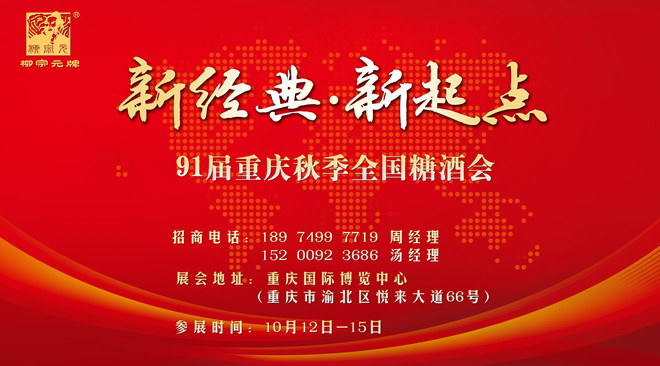 第91屆全國秋季糖酒商品交易會(huì)于10月12日在重慶國際博覽中心(重慶市渝北區(qū)悅來大道66號(hào))盛大舉行,柳宗元異蛇王酒攜全系列養(yǎng)生產(chǎn)品,在會(huì)展中心N7館79展位開展招商業(yè)務(wù)洽談。參展時(shí)間:10月12日 -10月15日